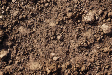 This image showcases a close-up view of rich brown soil, capturing texture and details that highlight natural components, making it ideal for agricultural or gardening themes.
