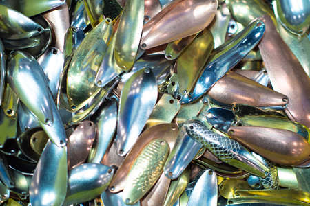 Fishing bait. Metal spinners. Swing fishing spoons. Artificial bait for fishing. Fishing accessories. Hobby.