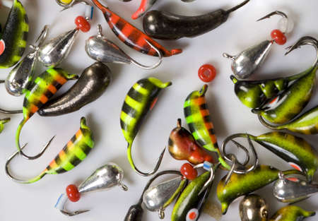 Fishing baits closeup isolated on white background