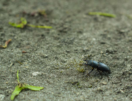 The stag beetle. A beetle in the red book. A very rare beetle. A beetle with horns in the wild.