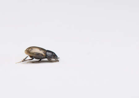 Macro shot of forest dung beetle (Anoplotrupes stercorosus) on white background surface
