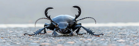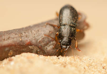 Detailed Macro Shot of Black Beetle on Dark Surface