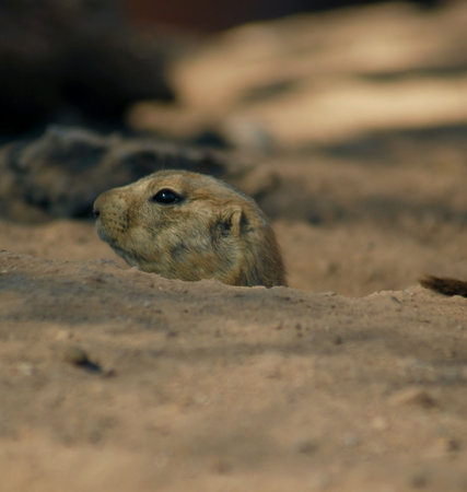 close-up of a curious rodent peeking out from a burrow