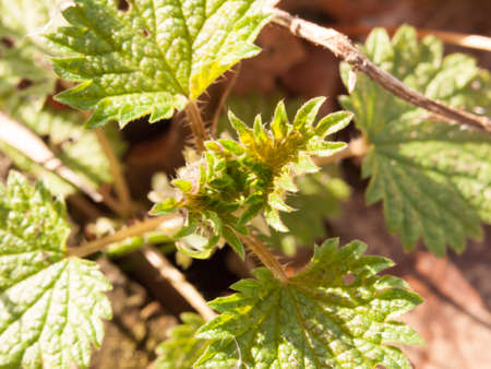 Common or Stinging Nettle, Urtica dioica, small plant macro, selective focus