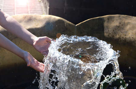 Drinking water natural in the hands.