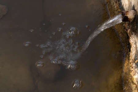 Waste water, mud flows from the pipe into the river, environmental pollution, the environment is contaminated.