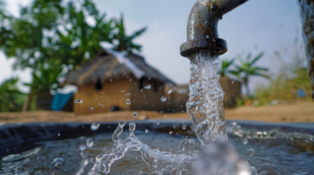 Clean and fresh water running from water pump