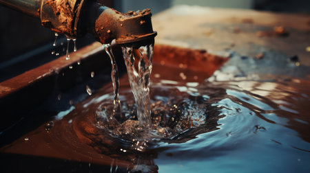 Rusty old machinery in rural scene, working pipeline flowing liquid generated by artificial intelligence