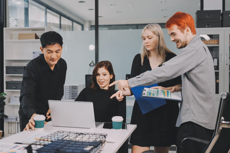 Selective focus of Success group of business people team meeting working with laptop in office