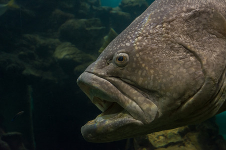 head of grouper fish in a Aquarium.