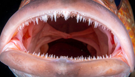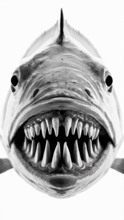 A close up of a fishs mouth with its teeth showing, AI