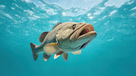 A close up of a fish with its mouth open in the water, AI