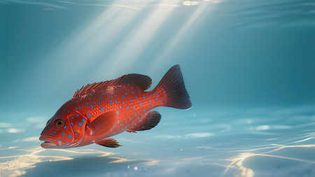 This stunning image features a grouper fish with vibrant coloration and intricate details, perfect for projects related to marine life and nature.