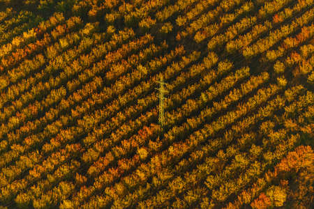 Fruit farm and high voltage lines in the Czech Paradise on an aerial photograph