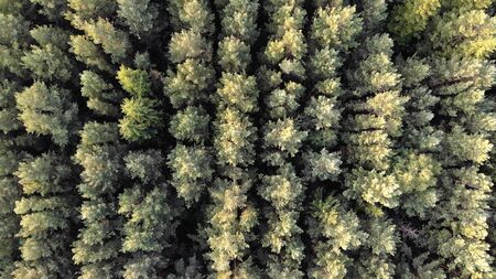 Aerial view of evergreen coniferous forest. Nature background