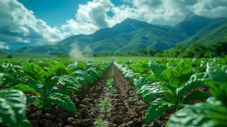 Springtime cotton field with fresh, green sprouts in soft focus. beautiful Generative AI AIG32
