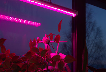illumination of indoor plants with a phytolamp in winter to extend the daylight hours