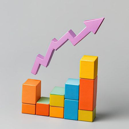 Creative bar graph made from colorful blocks, set against a white minimalist background