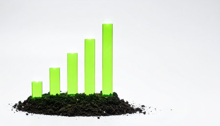 A vibrant green bar chart emerges from rich, dark soil, symbolizing the concept of organic growth and sustainable investment.