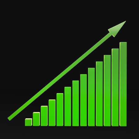 Growing green bar graph on black soil background. Business growth concept.