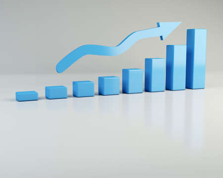 Increase graph with gradient point up arrow concept of business profit 3D rendering illustration