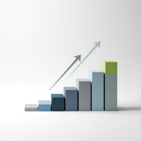 Vibrant bar graph representing growth and success, with colorful bars in gold, orange, and teal. background features soft bokeh effect, enhancing feeling of optimism and achievement