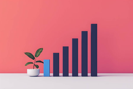 A vibrant representation of economic growth with green sprouts alongside ascending bars.