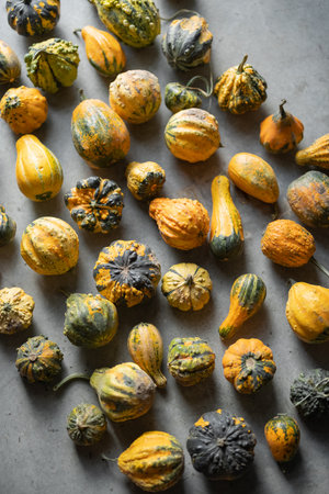 assortment of small ornamental pumpkins, autumn or fall themed background image