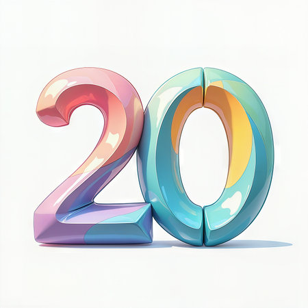 Birthday celebration with a colorful 3D number twenty on a white background.