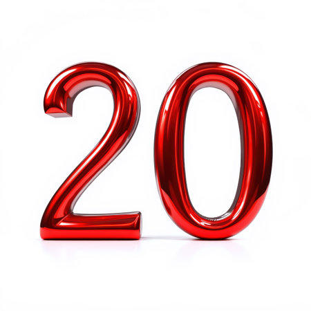 Bold Red Number 20 on a Clean White Background for Creative Projects, Marketing, and Design Use in Modern Aesthetic Themes and Visual Media