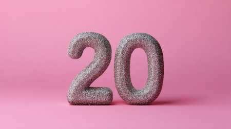 20 Years Anniversary Celebration Number 3d Render Illustration on Pink Background