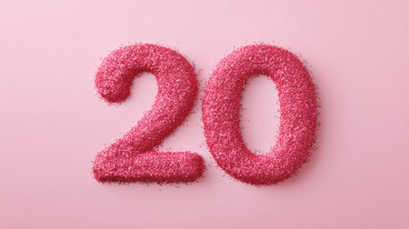 Number 20 made of white and pink pearls on a light background