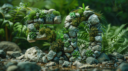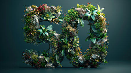 Realistic vertical garden number, discount of green leaves on a white background, 3D rendering