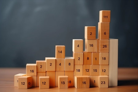 Wooden blocks displaying business growth icons, financial savings symbols, a target goal, the year 2026, representing future planning, economic strategy, investment forecasting, long-term objectives.