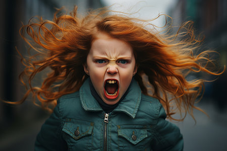 angry cross irritated little girl screaming. emotional facial expression.