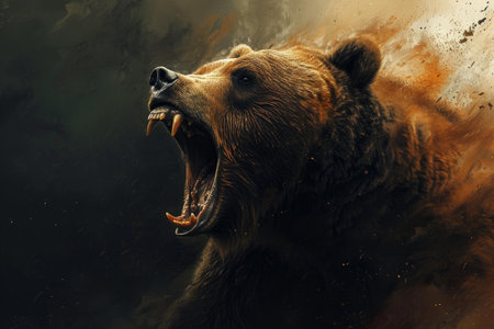 Image of side profile a ferocious brown bear roared gothic. Wildlife. Animals. Illustration. Generative AI.