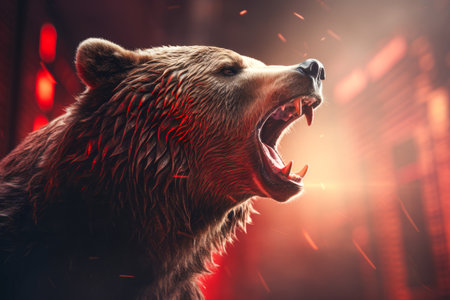 roaring bear on chart background, stock market, cryptocurrency. Concept for financial investment,