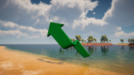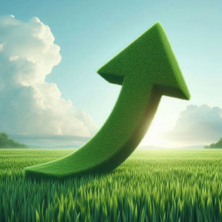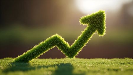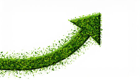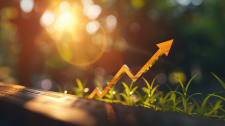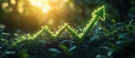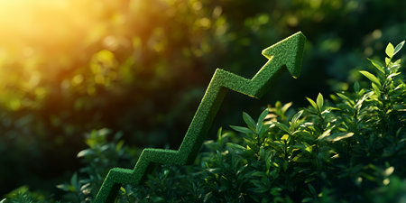 A green arrow symbolizing the rising trend of sustainable investment, showing the growth of green finance and ecological practices.