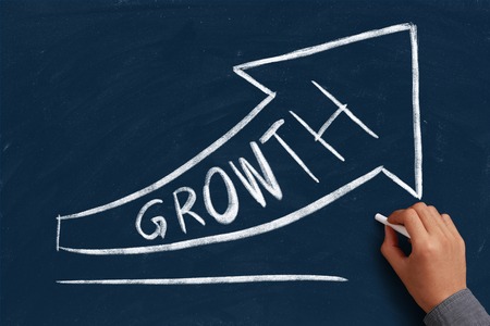 Growth concept on the chalkboard with writing hand.