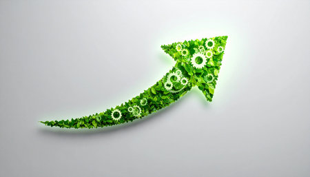 A leafy arrow pointing upwards, formed by green plants, symbolizing the growing trend of sustainable investments in the world.