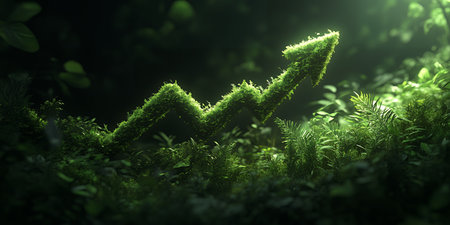 An upward arrow formed from green foliage, symbolizing the growth of sustainable investment in ecological practices.