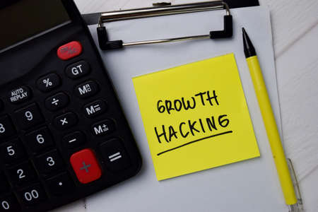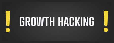 Growth Hacking. A blackboard with white text. Illustration with grunge text style.
