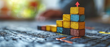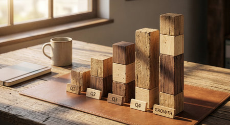 Wooden Block Bar Chart Business Growth Concept on Office Desk