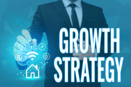 Conceptual display Growth Strategy. Internet Concept The method a company uses to expand its business or market Progress In Solving Problems Breakthrough New Designs And Ideas