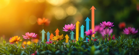 A Growing plants with financial growth arrow symbolizing sustainable finance