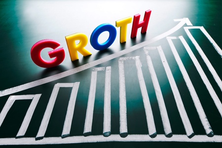 The word growth against the background of a stock chart