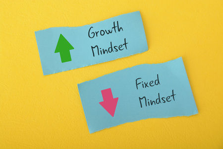 Growth Mindset message writing on paper post at wall , self management concept