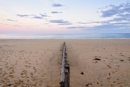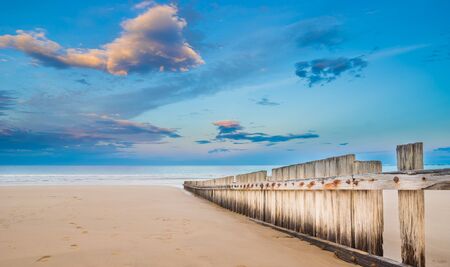 single groyne on the beach. at sunset light atmosphere. You help protect the coast