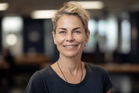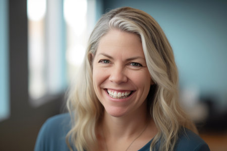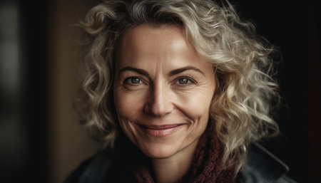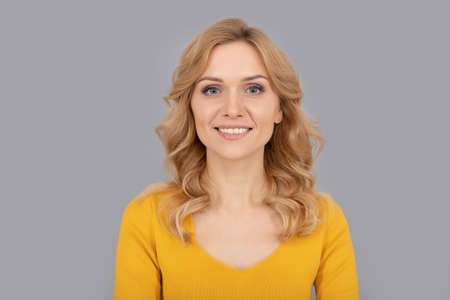Portrait of beautiful middle-aged woman with curly blond hair.