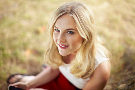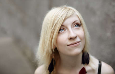 portrait of blond young woman outside